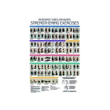 53 commonly used tubing/band strengthening exercises organized by body parts.Laminated, 2'x3' full-color poster with corner grommets for easy hanging. Mounting hardware included.
